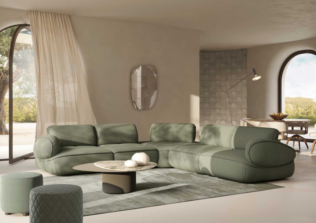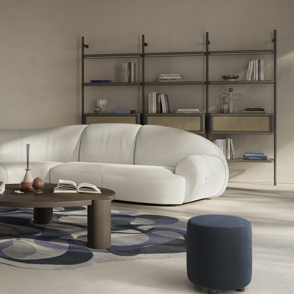 還有藉由設計師 Karim Rashid 匠心打造的Memoria,以流暢有機的線條優雅詮釋義大利山脈的綿延起伏。其設計靈感巧妙融合 Natuzzi 經典沙發的輪廓與當代創新美學,流線型座椅曲線不僅營造出極致舒適的坐感,更向品牌經典款沙發致敬。