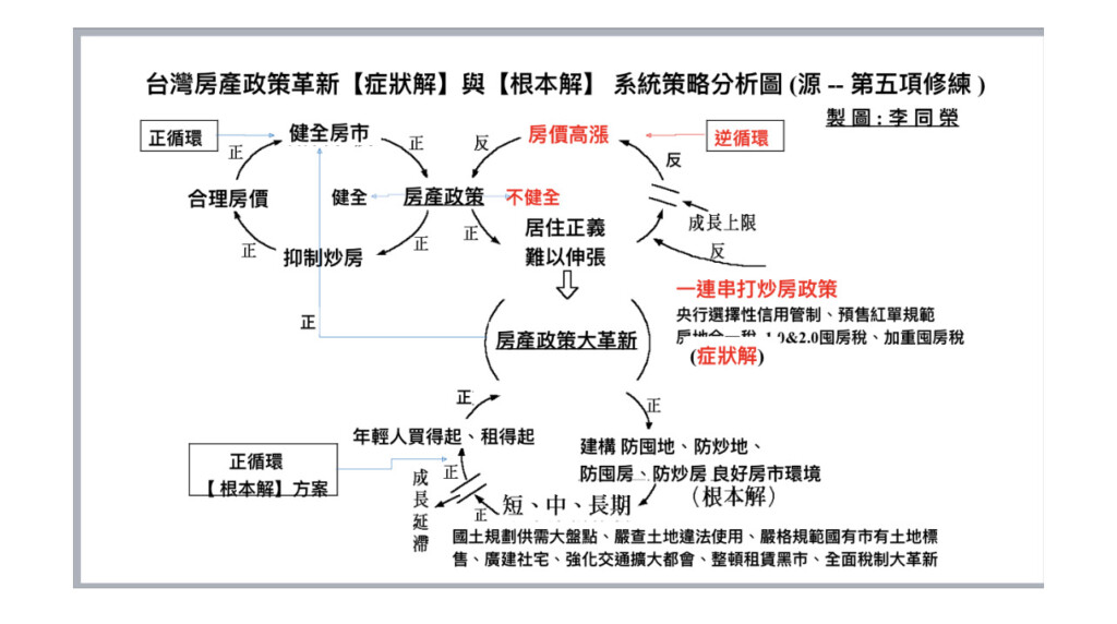 房市趨勢專家李同榮認為,台灣不能「窮到只剩打房」,與其寄望高稅負與限貸手段解決房價問題,政府更應針對供需結構出手,從國土均衡發展、社會住宅供應、交通建設、就業機會分散等面向治本。否則將導致市場扭曲、投資信心動搖,讓真正想購屋自住的民眾承受更大壓力。