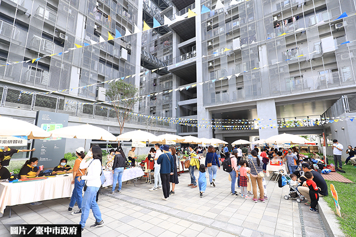 住宅處表示,台中社會住宅展現居住正義,太平育賢一期好宅將地面層空間開放給鄰里,提供社會住宅及周邊居民豐富的公共場域,居民可在錯落的公共場域中與其他住民互動交流,產生社區認同感及生活安全感。入住典禮結合「台中社宅共好生活節」,舉辦宅市集,邀請太平育賢、豐原安康、大里光正、南屯精科社宅居民擺攤、表演,育賢非營利幼兒園還提供遊具讓小朋友玩樂,串連散布在台中市各區的社會住宅,建立共好永續、充滿溫度的台中社宅大家庭。