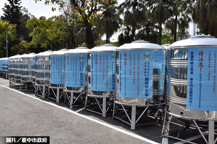經發局長張峯源表示,國道一號以東的甲區將於4月6日起開始兩日停水,自來水公司在甲區設置共276個臨時供水站架設;而國道一號以西的乙區將於4月8起開始兩日停水,共設置71個臨時供水站,供市民免費取水。經發局補充,所有臨時供水站皆從自來水公司各淨水場抽取,均符合飲用水水質標準,市府為加強臨時供水站安全及用水品質,設置警察局巡邏箱,由環保局定時抽檢水質。