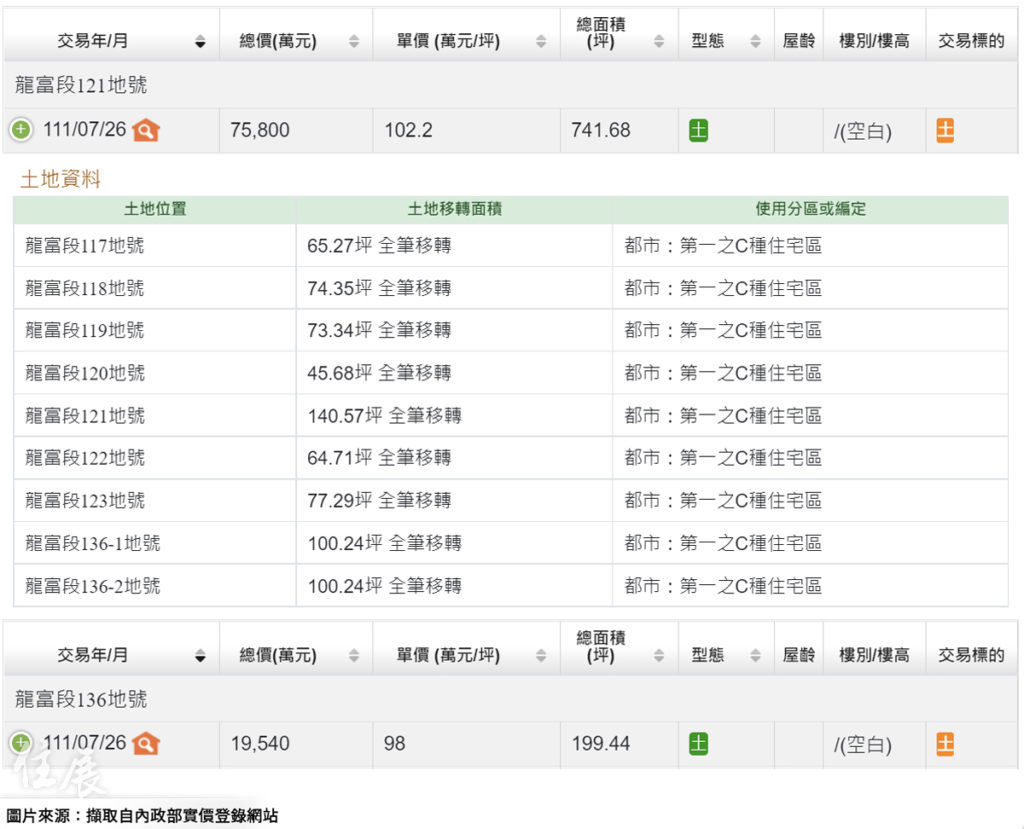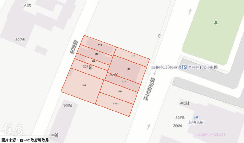 根據資料顯示,這塊空地土地面積高達941坪,前後分割為10塊地號、2筆交易。土地分區則是「住一之C」,最高建蔽率50%、最高容積率170%,開發效益高、可作為營業登記使用,用途也較廣泛。