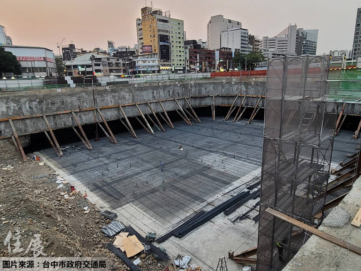 交通局長葉昭甫指出,大台中轉運中心2樓將設置人工平台創造行人友善空間,滿足短程移動及提高大眾運輸使用率,並預留2樓及地下商店街空間,日後可提供經濟、藝文流行等活動場域,截至今年4月中旬整體進度為14.53%,正施作A區筏基鋼筋綁紮、A區地下室外牆防水施作、B區擋土柱施作、C區擋土斜撐組立等工項,預計2025年下半年完工啟用。
