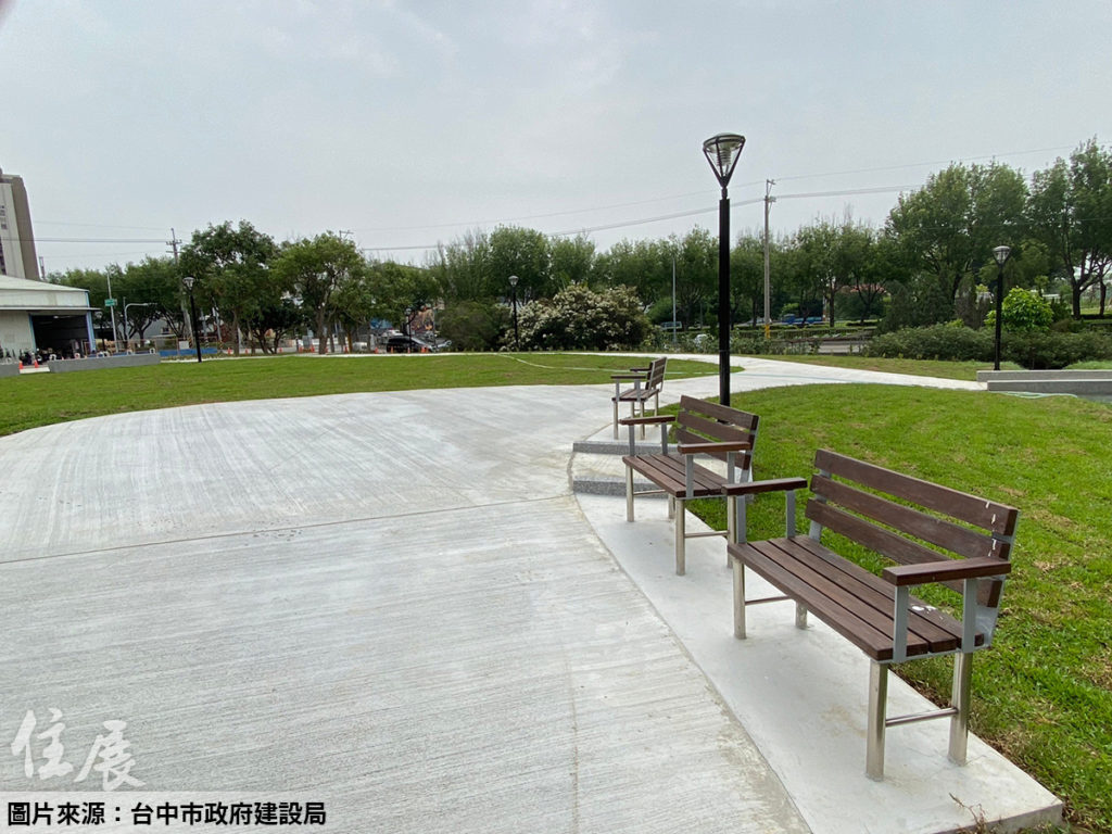 工程設置內容包括小客車停車空間、人行散步道、體健設施、休憩座椅、景觀照明及綠美化(圖/台中市政府建設局)