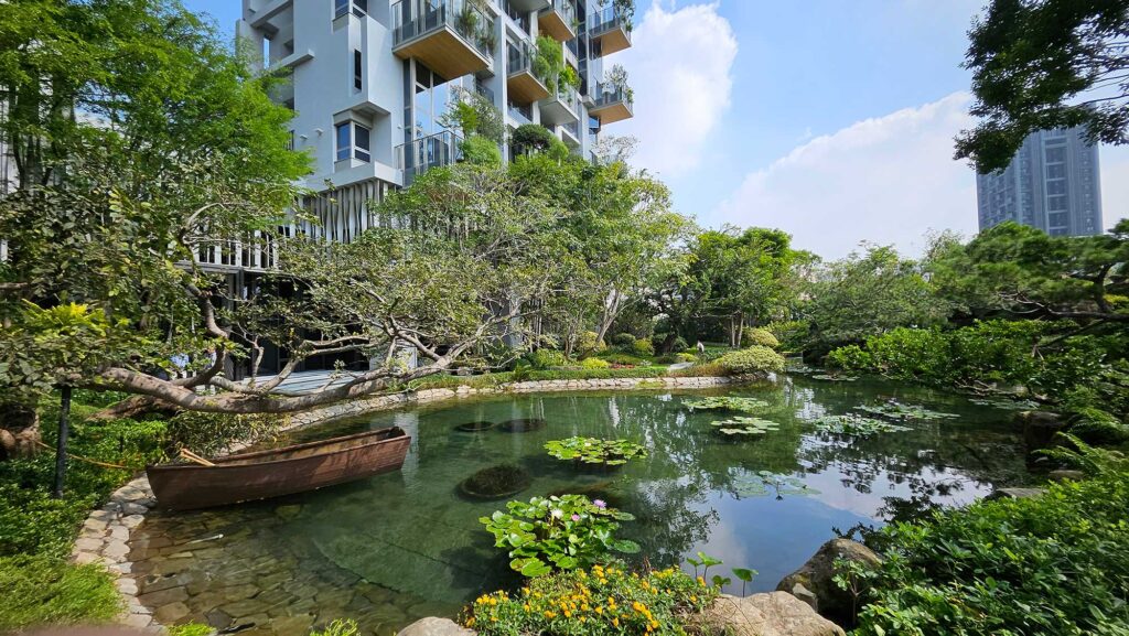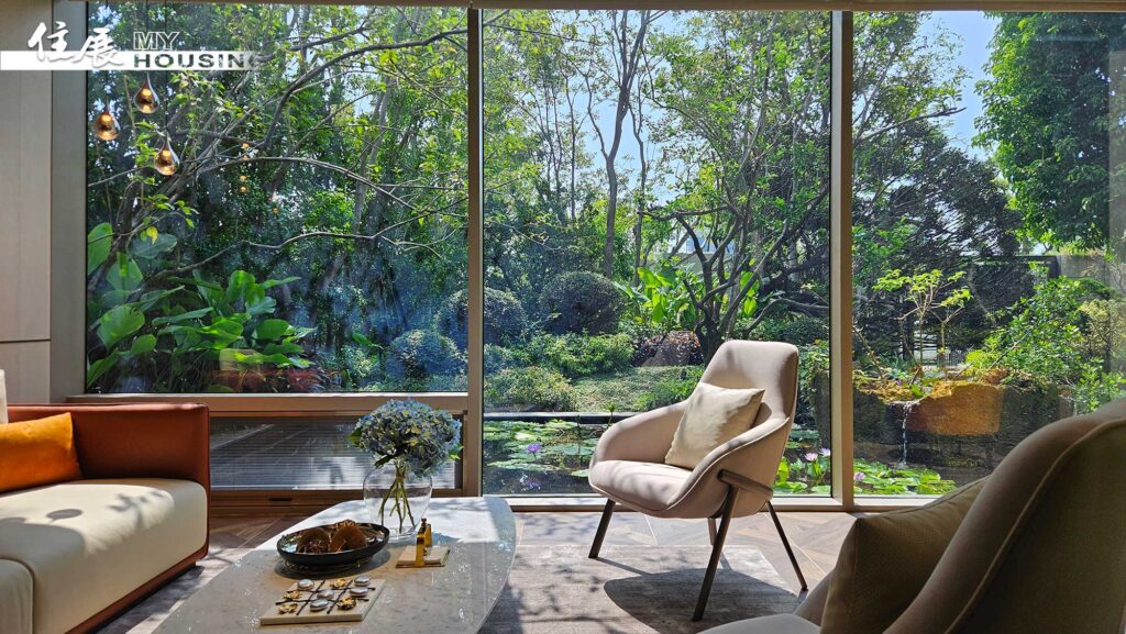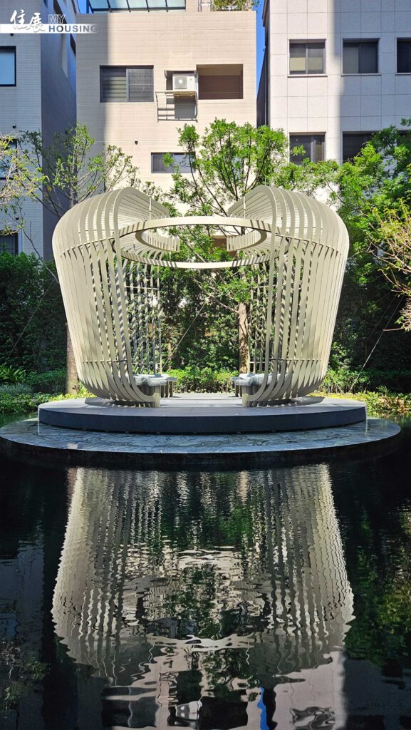 林谷聯表示其中的綠植,更是從精銳的樹木銀行中挑選1,200顆過來,經過景觀造林專家反覆打磨,只要比例不對就馬上汰換掉,最後僅留下600顆,其中光是喬木就有20幾種,另外還有門口的迎賓鳳凰木、花園裡的大樟樹,以及湖畔旁還有朴樹等。