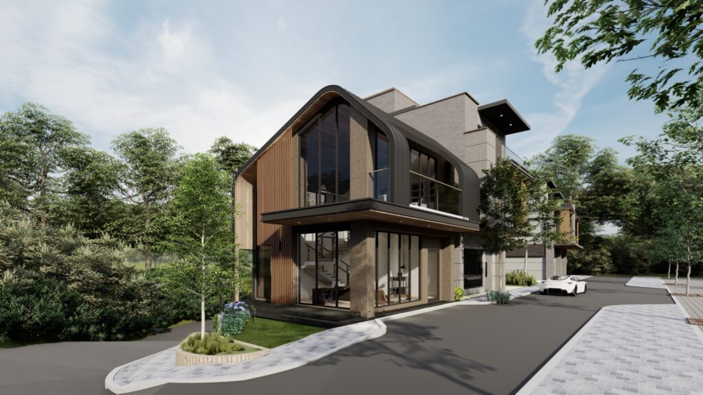 產品方面,規劃連棟、雙併、獨棟等,面寬5.8至6.4米,3至4樓層、4至5房、開闊格局,全區臨路退縮,戶戶棟距16米以上,總價2,680萬元起,可用作渡假宅、備用宅、退休宅。