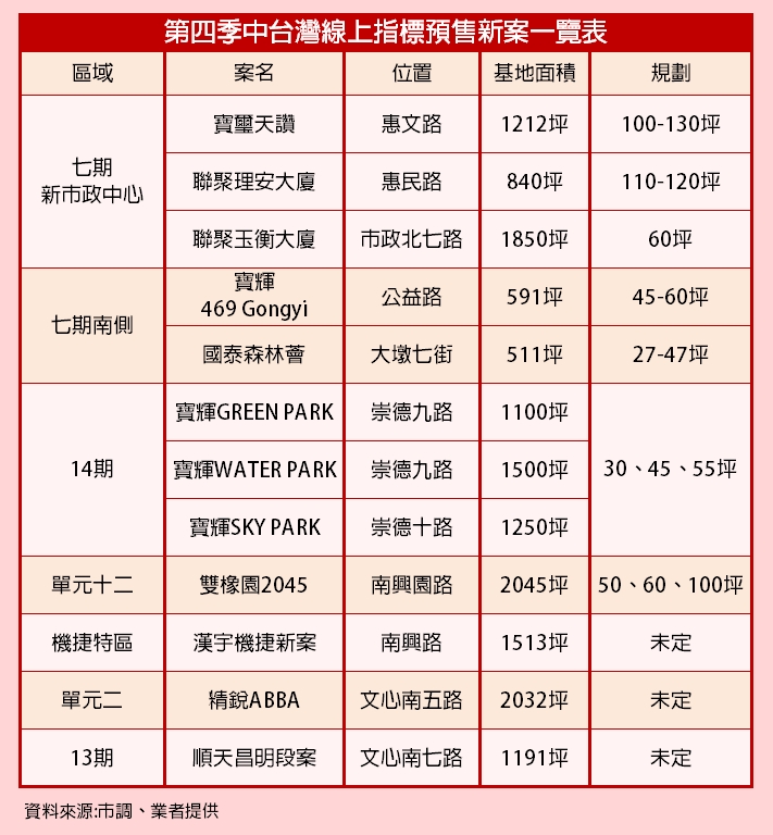 南台中則有專注高端購屋族群,打造地標級奢綠美宅的精銳建設,將於單元二推出「精銳ABBA」,採先建後售方式銷售,目前已動土、即將正式進場,備受高資產族矚目。