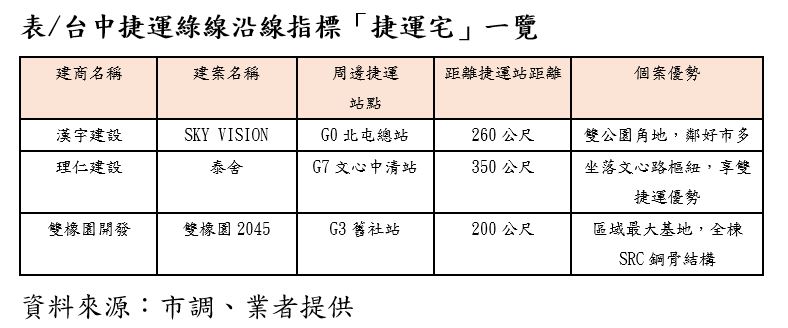 台中捷運綠線通車已滿3年,日均運量突破4萬人次,沿線預售屋房價漲勢兇猛,受惠於交通便利等優勢,出站僅需步行5至10分鐘的捷運宅,吸引指標建商爭相布局,成為區域置產熱門標的。房市專家表示,在央行打炒房的政策下,捷運宅較具保值性,可免受房市反轉影響。