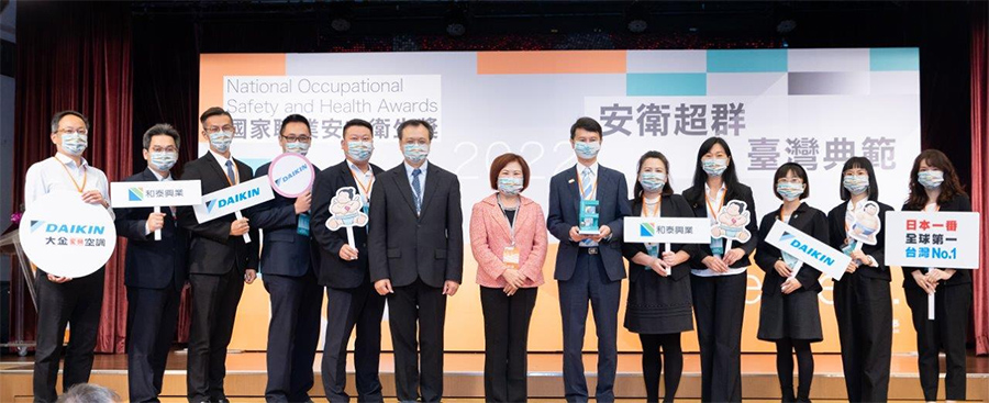 勞動部主辦「國家職業安全衛生獎」,10/20於台北福華大飯店舉辦111年度頒獎典禮,此獎為職業安全衛生領域最高榮譽,和泰興業大金空調榮獲「勞動健康特別獎」殊榮,由莊郁仁行政長代表領獎時表示:「在和泰興業創立即將60年、代理大金空調將邁入30年的前夕,榮獲勞動部國家職業安全衛生獎,除了肯定更是持續精進的動力。」