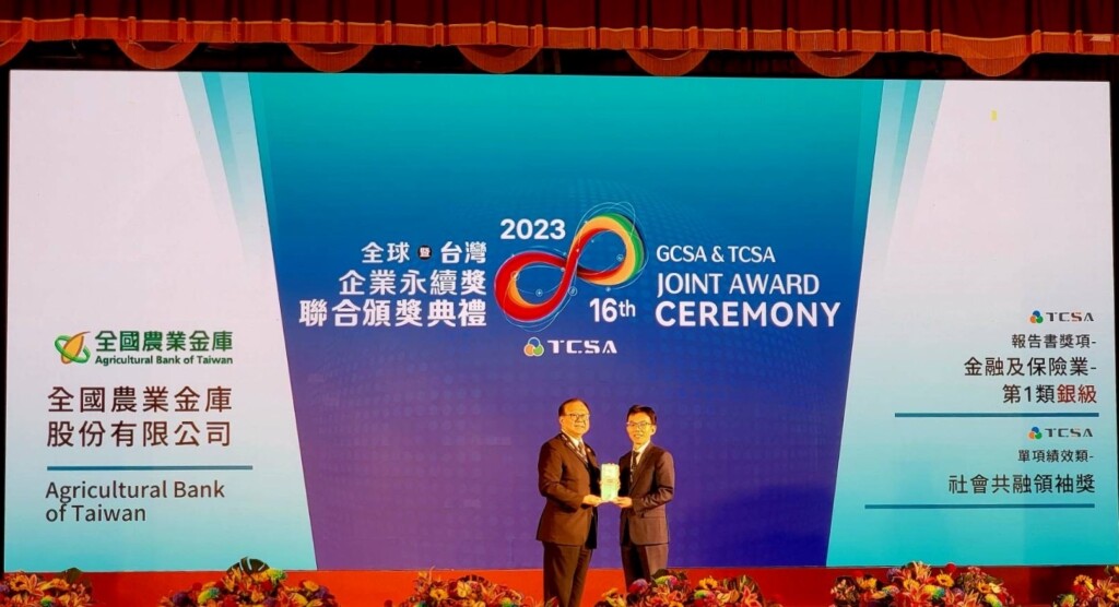 2023年第16屆「TCSA台灣企業永續獎」得獎名單於日前揭曉,農業金庫榮獲「社會共榮領袖獎」以及永續報告類-金融及保險業第一類-銀級。此外,農業金庫也獲頒英國標準協會「2023 BSI永續韌性傑出獎」。