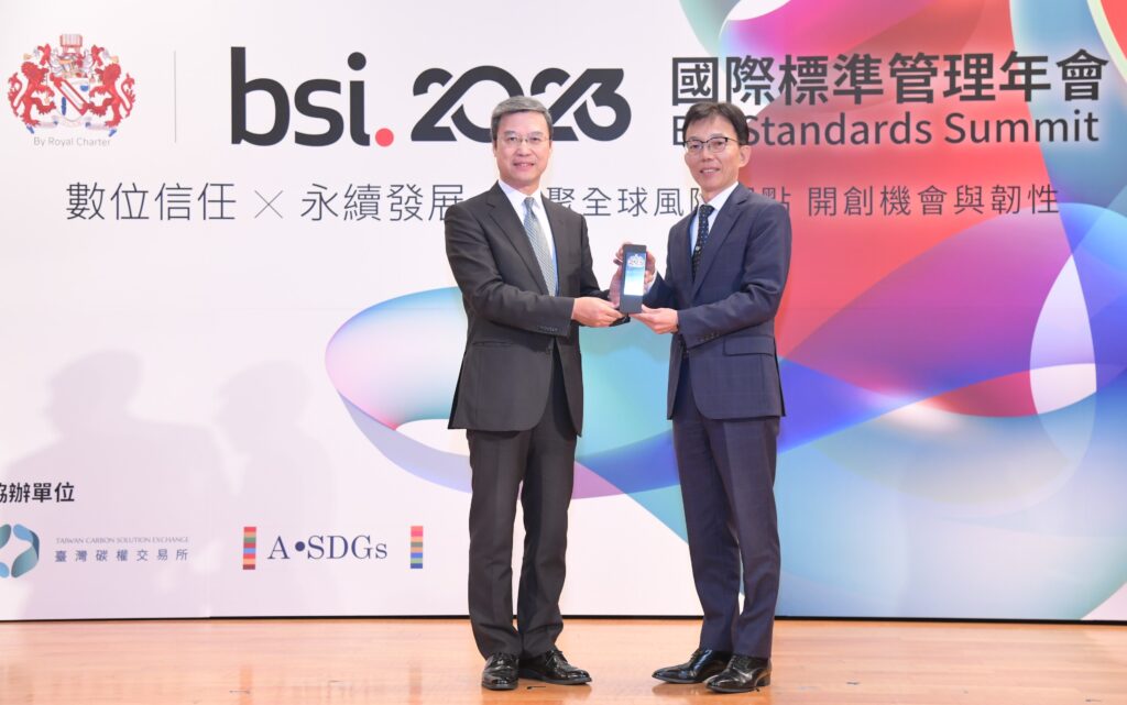 農業金庫主要由於取得ISO 50001能源管理系統、ISO 14001環境管理系統、ISO 14064-1組織型溫室氣體盤查及ISO27001資訊安全管理系統等多項國際標準永續發展相關ISO認證,獲英國標準協會頒發「2023 BSI永續韌性傑出獎」,未來將規劃導入ISO10002客訴管理系統,逐步擴展永續發展範疇接軌國際。