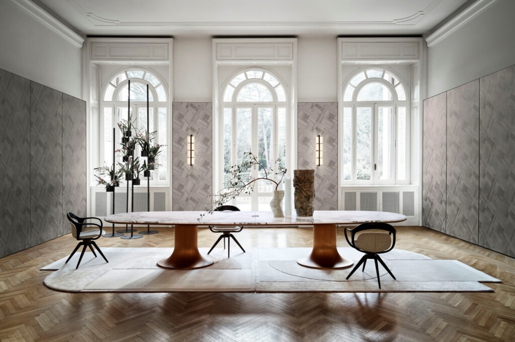 經典家居品牌,如Giorgetti、Promemoria和Loro Piana,展示了功能性、永續性與自然美學相融合的創新設計。