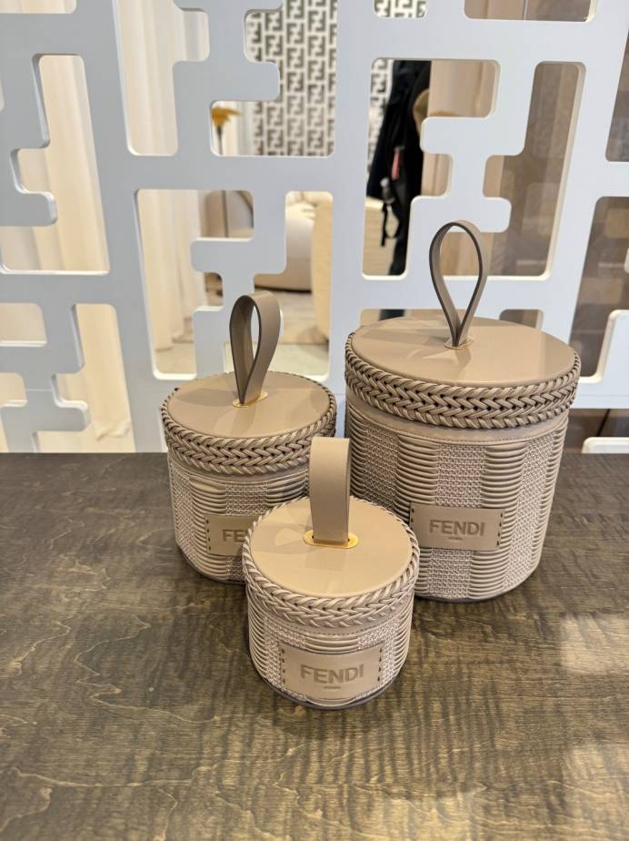 FENDI將品牌標誌性的FF和O’Lock logo,還有Pequin條紋圖案,重新詮釋為一系列家居裝飾,包括Art de la Table餐具組、皮革托盤、皮革和羊絨編織的靠墊等,展示了品牌卓越的工藝水平。