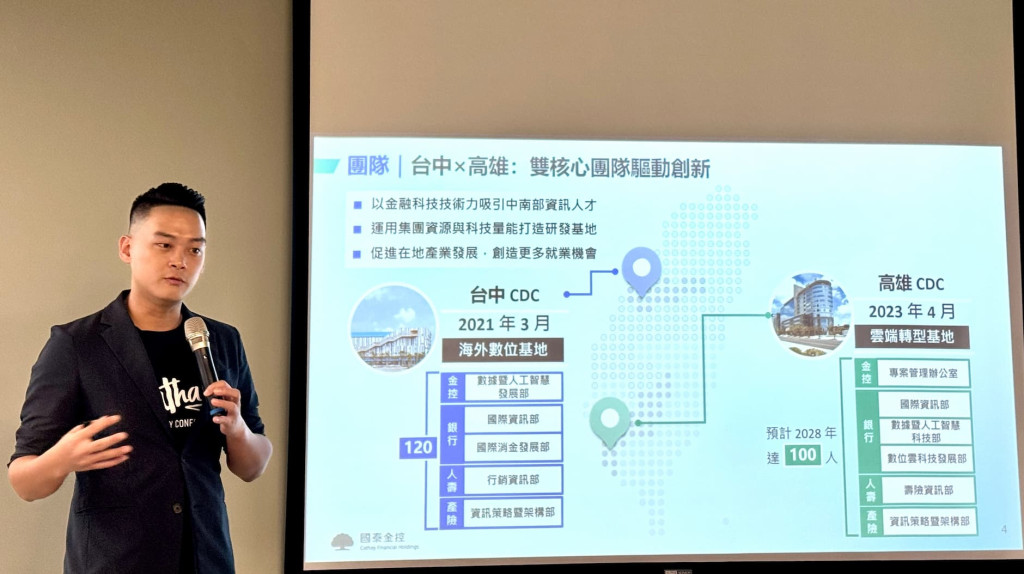 Jeff 指出,國泰金目前海外有 7 家分行、2 家子行,因此將台中 CDC 設定為海外數位基地,用以協助當地分子行外部數位服務,遠距支援國泰金在東南亞各據點的海外系統研發、數位及數據系統建置。