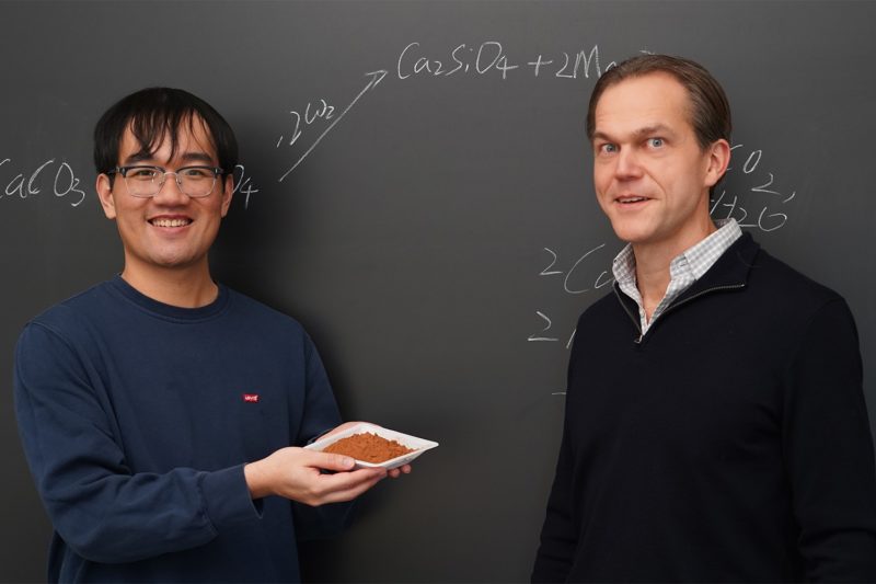卡南教授和史丹佛博士後研究員Yuxuan Chen(首圖左)開發出新流程,將慢速風化的矽酸鹽轉成反應性更高的礦物。「我們設想新化學方法,以簡單離子交換反應活化惰性矽酸鹽礦物。」Chen解釋:「我們沒想到會如此有效。」