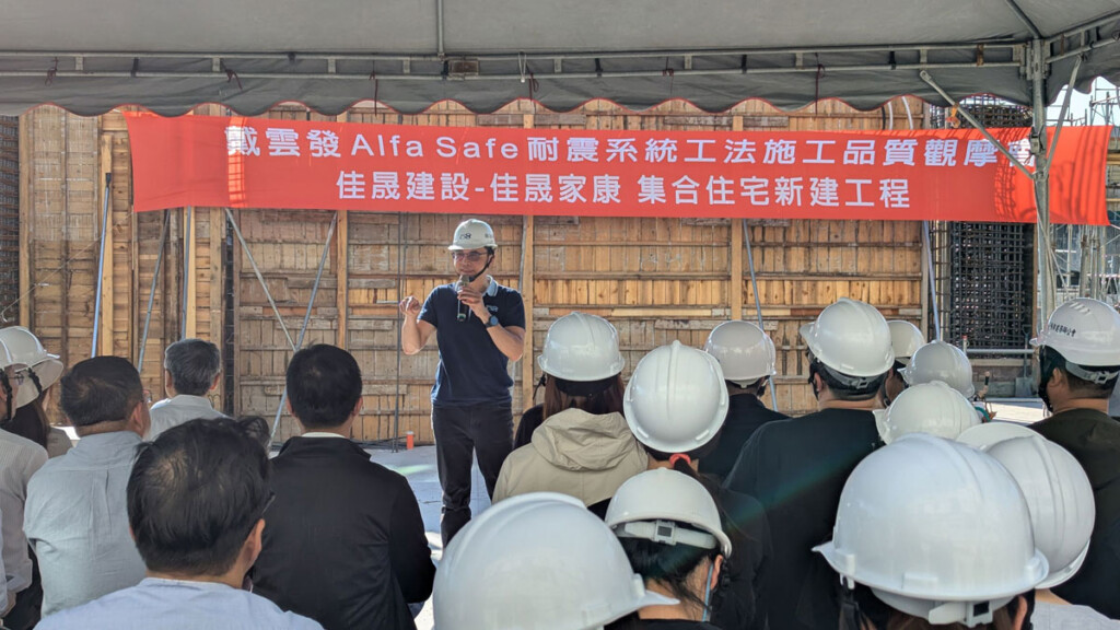面對嘉南平原活躍斷層及高土壤液化潛勢區的雙重威脅,建築結構的耐震安全備受各界重視。為提升業界對於創新「Alfa Safe耐震系統工法」施工品質的實際了解,建築安全履歷協會於114年5月5日(星期一)下午假台南市永康區永二街279號的「佳晟家康」建案工地,舉辦「戴雲發Alfa Safe耐震系統工法施工品質觀摩會」。