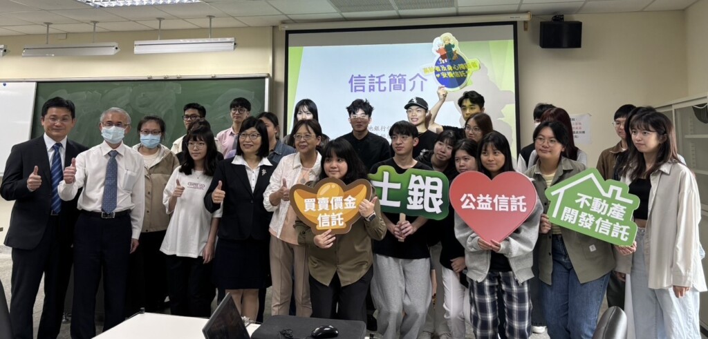 土地銀行於114年5月12日前進國立臺北大學不動產與城鄉環境學系舉辦信託知識宣導活動,透過深入校園、面向學生,介紹信託概念、架構及益處,強化學生對資產管理的觀念,善用銀行基金理財業務,並推廣信託制度與實務應用的理解,進一步擴大信託制度在社會的滲透力。