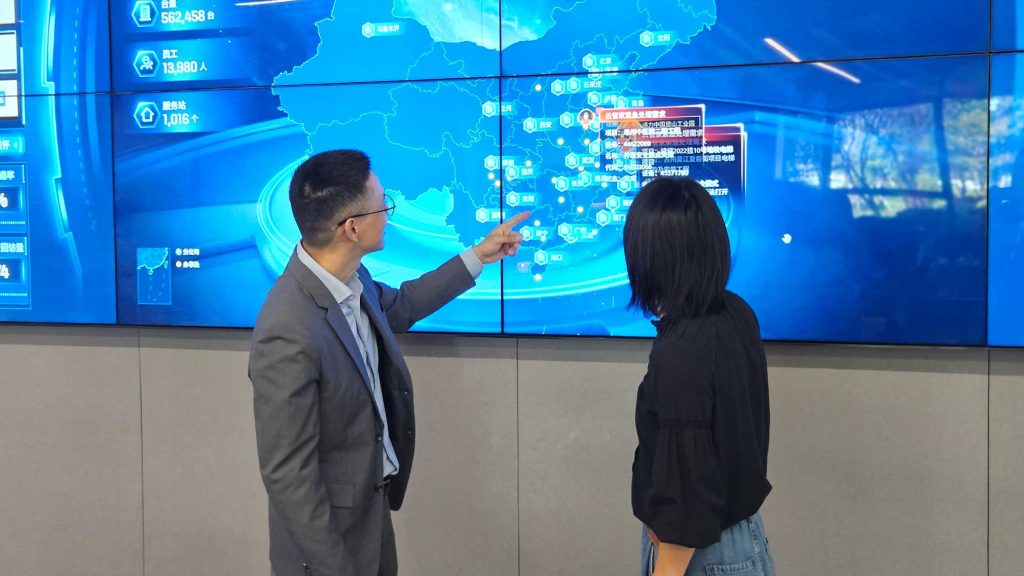 劉繼然親自帶記者走進崑山的AI智慧客服中心,直擊該項服務的數位化面板。透過此系統,每部電梯的運行數據可即時回傳並連線至雲端平台,再由 AI 進行預測性維護,並將結果回饋給用戶,作為維運與決策的參考依據。