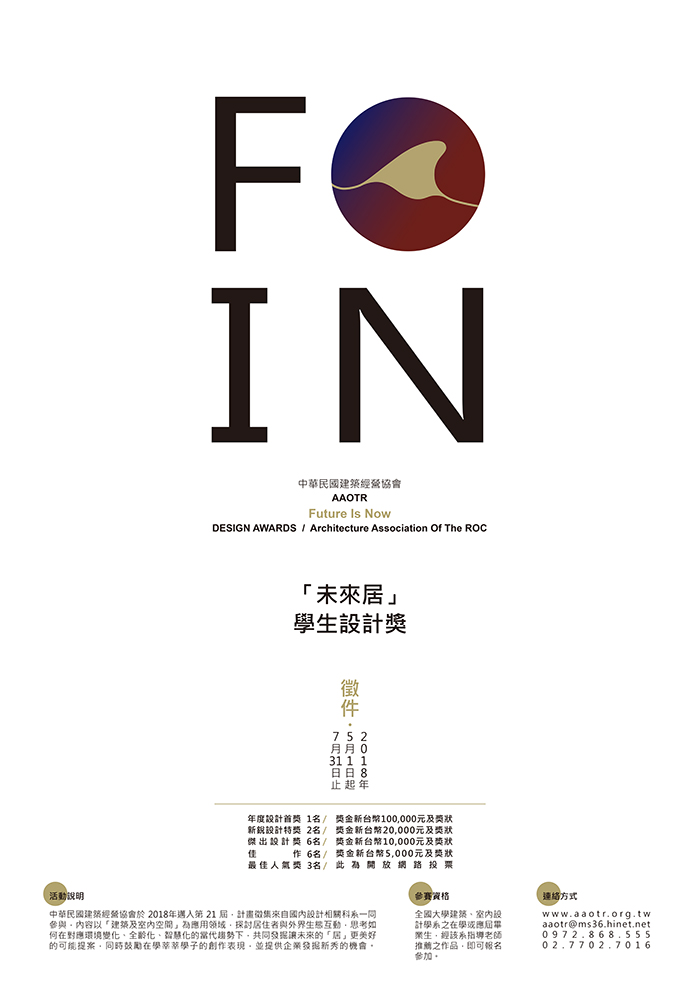 對「未來居學生設計獎」的人士,可至www.aaotr.org.tw查詢相關訊息。根據該獎項設計,若獲得年度設計首獎者,可獲得十萬元獎金。