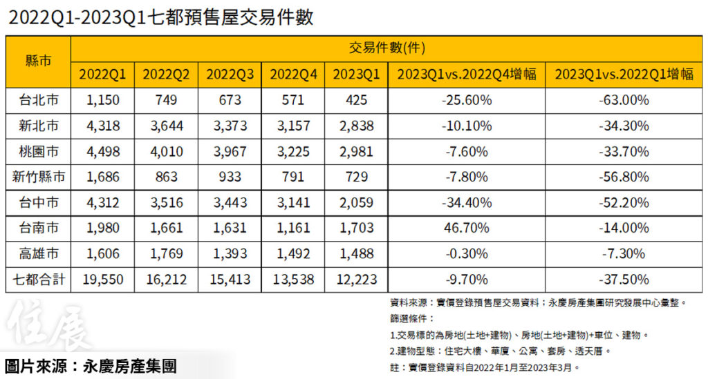 2022Q1-2023Q1七都預售屋交易件數(圖/永慶房產集團)