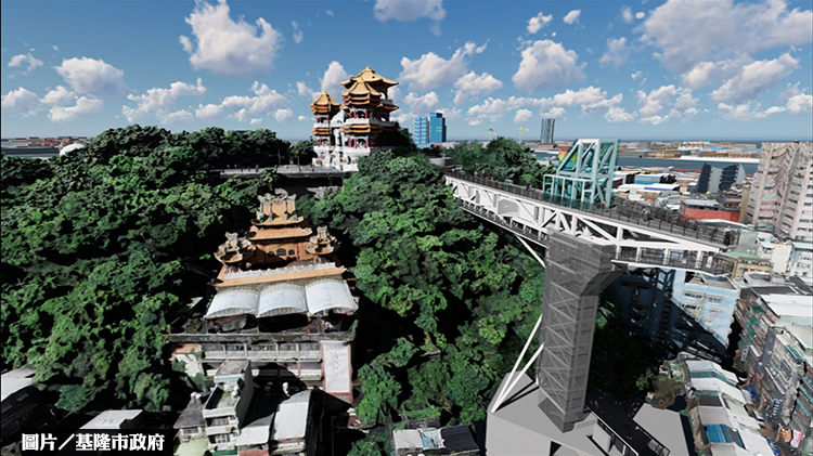 「基隆山海城串聯再造計畫」,將於義二路及信四路交叉口,興建立體豎道及高架人行棧橋連結主普壇廣場,並於信二路防空洞內,興建無障礙電梯連結上方扇型廣場。林右昌說明,山海城串聯再造計畫,設置立體豎道電梯,垂直上到主普壇,未來從廟口商圈延伸到哨船頭商圈,帶動地區整體發展,也串接東岸郵輪旅客大樓出入口,搭乘郵輪旅客經由信四路,搭豎梯直達主普壇,眺望基隆港山海美景。