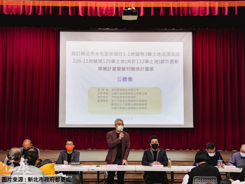 公聽會昨晚於永和永平高中舉辦,超過百名住戶、地主與地方仕紳到場參與,本次公聽會主要向住戶、地主說明,將來預計的容積申請獎勵值以及開放空間位置的先期規劃;公聽會中也說明包括選配條件、抽籤作業、拆遷補償安置等項目。