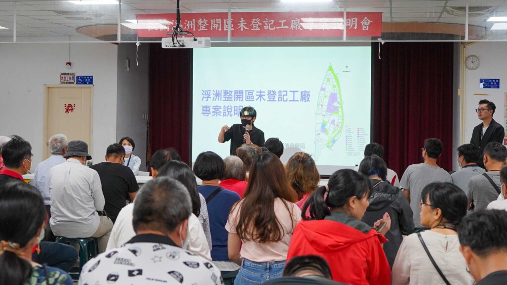 新北經發局17日邀集土地媒合相關單位、銀行業者及廠商召開「浮洲整開區未登記工廠專案說明會」,聽取廠商意見並提供整合資協助,協助廠商瞭解未登記工廠安遷輔導、配套措施。