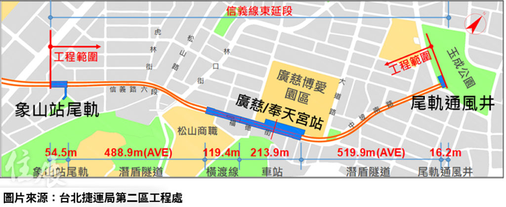 信義線東延段路線工程範圍圖(圖/台北捷運局第二區工程處)