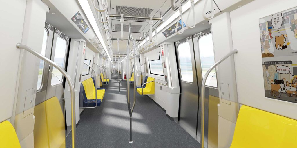 考量南北環路線銜接高鐵與台鐵等長程運具,顧及轉乘旅客的使用需求,特別在車廂前後側設計底置式行李架,並與乘客站立空間適度區隔,兼顧美觀與實用性。
