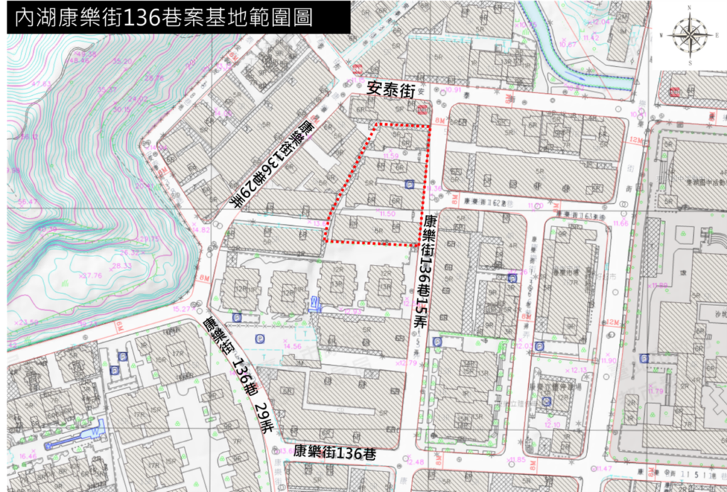 都更處說明,北市內湖區康樂街136巷一案為575專案計畫受理申請的第1案。該案位內湖區康樂街西側,為列管須拆除的海砂屋,基地面積約1,840平方公尺,第一階段意願比超過9成,經專業技術團隊進行第二階段方案評估,協助建築量體、換坪比及財務等試算,已完成初步更新建築規劃方案。