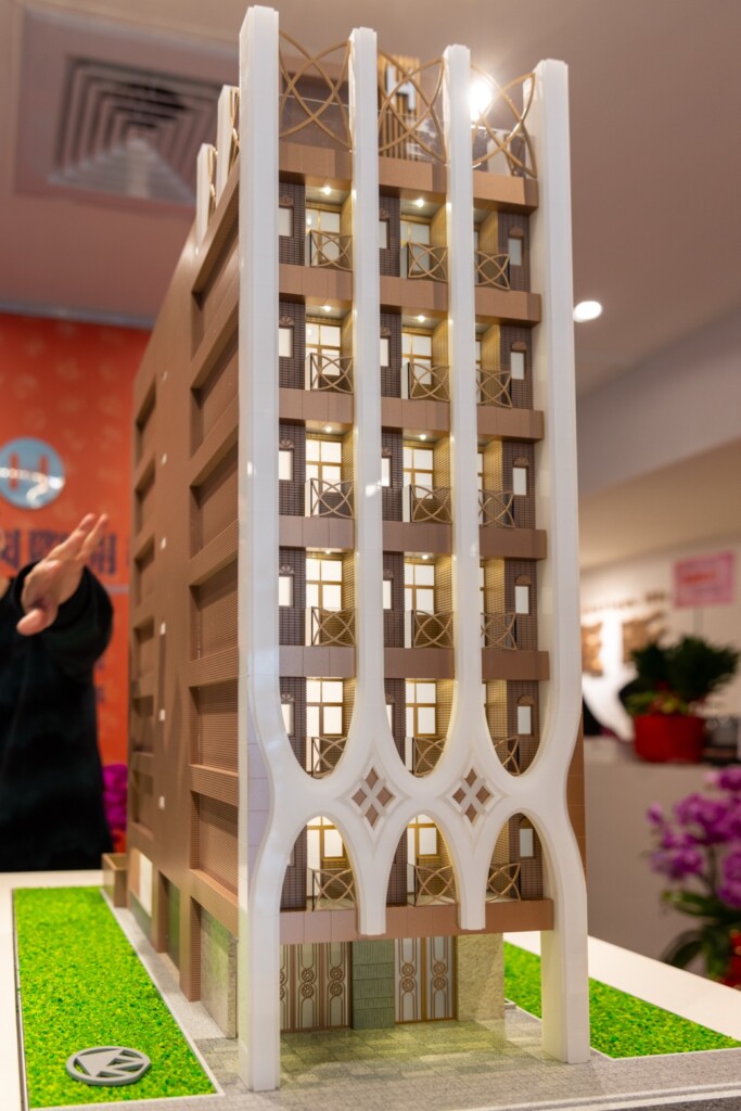 值得一提的還有建案外觀,以玫瑰金色調為主,主打女性客群,強調回家如女王回宮般的尊榮感,讓小宅也能享有大戶的居住體驗。建築師梁丕昇表示,在此案的設計上,特別運用寶石的概念,打造藝術精品的現代風格,採用高品質建材與節能設計,不僅提升了建築的耐久性,更符合綠色環保的趨勢。