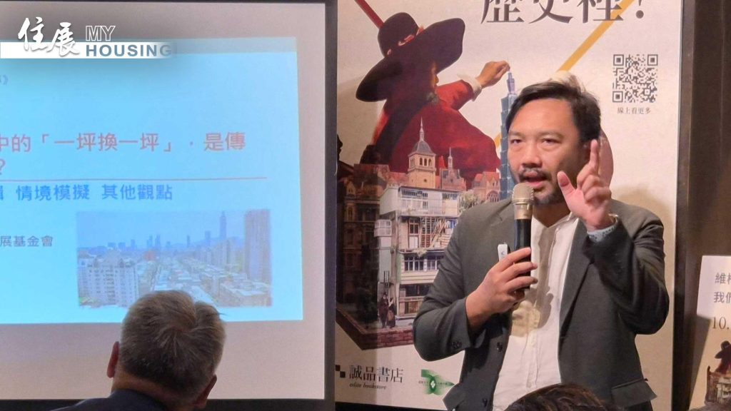 他認為,容積獎勵應該是針對公共利益或危險建物給予額外誘因,而非「撒糖式政策」。「如果把容積當成萬靈丹,到處加、處處給,最終只會扭曲市場與地價。」