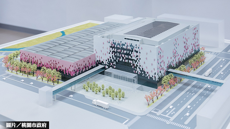 桃園會展中心位於機場捷運A19桃園體育園區站,基地規模約2.87公頃,總樓地板面積7萬6,120平方公尺,為地上4層、地下2層的建物,其外觀設計不僅是一個建築作品,也是城市地標,內部則蘊含會議、展覽、演唱會與企業活動等功能,對於桃園亞洲‧矽谷計劃與桃園航空城計畫相當有助益,可望有效提升產業活動,發揮機場經濟學的效益。對此,桃園市府與經濟部及外貿協會將充分合作,提供北部展覽場域另一選擇,未來更規劃以空橋連結桃園會展中心、亞洲‧矽谷創新研發中心、桃園國際棒球場及國際觀光旅館,順利連通A19桃園體育園區站相關設施,帶動產業能量。