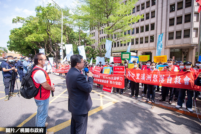 桃園市政府以地毯式民意訪查,若干不同意參與區段徵收的聚落,如兩河流域、宏竹里,已經確定剔除,而希望參與的新增地區,如海口里崙仔後社區,則依照其意願納入徵收。並依循「先建後遷」及「離村不離鄉」、「一里一安置」三大原則,讓桃園航空城計畫內住戶的拆遷工作,可以保留原來的社區鄰里關係與文化紐帶,落實居住正義。該案參與徵收的地主,農地可以分配41%住宅區土地,建地可以1坪配1坪,可以說是充分保障地主權益。