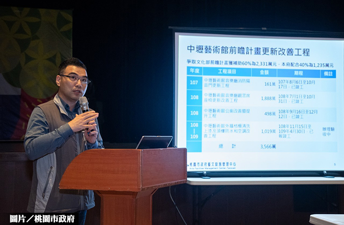 中壢藝術館及桃園展演中心可謂是桃園的「兩廳院」,桃市府爭取前瞻計畫經費9,000多萬元的補助,協助改善轄內藝文場館的硬體設施,希望全面提升館舍的品質及使用效果;中壢藝術館前瞻計畫更新改善工程總經費約3,500萬,其中6成由中央補助、4成由桃市府自籌。