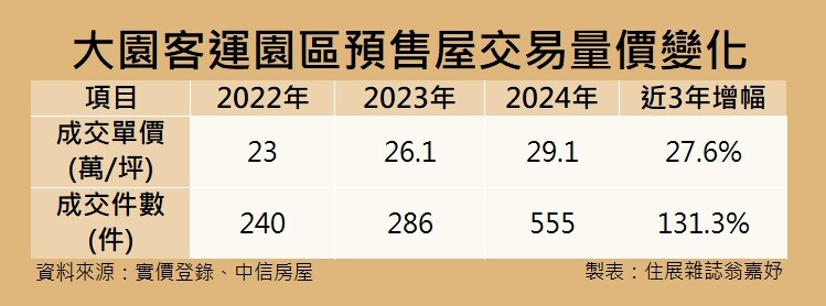 交通建設利多 桃園大園客運園區「價量俱揚」
