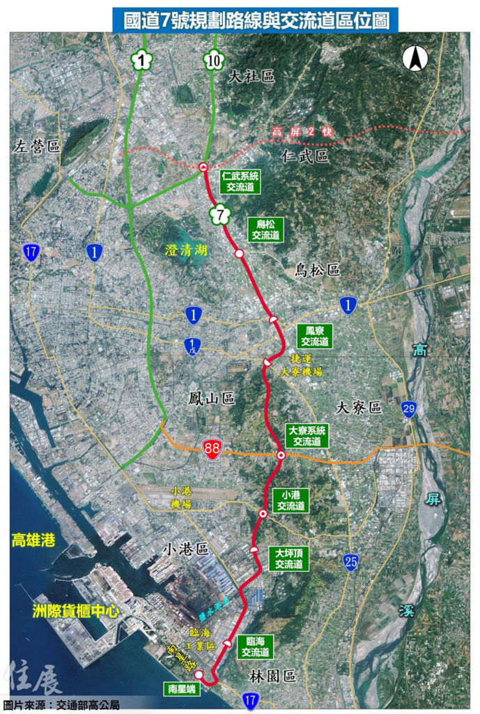 國道 7 號高雄路段計畫示意圖(圖/交通部高公局)