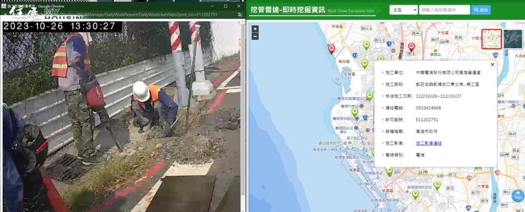 工務局表示,今年完成的挖管雷達,是將管挖工程施工影像系統結合道路挖掘管理系統,民眾可直接點選施工泡泡,便能掌握管挖工程基本資料,包括施工管線單位、地點、聯絡電話等,同時也可看到即時施工影像,讓市民可了解家門前管挖施工動態,並能全民督工,協助市府監督管挖工程的執行。