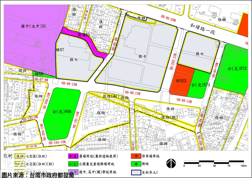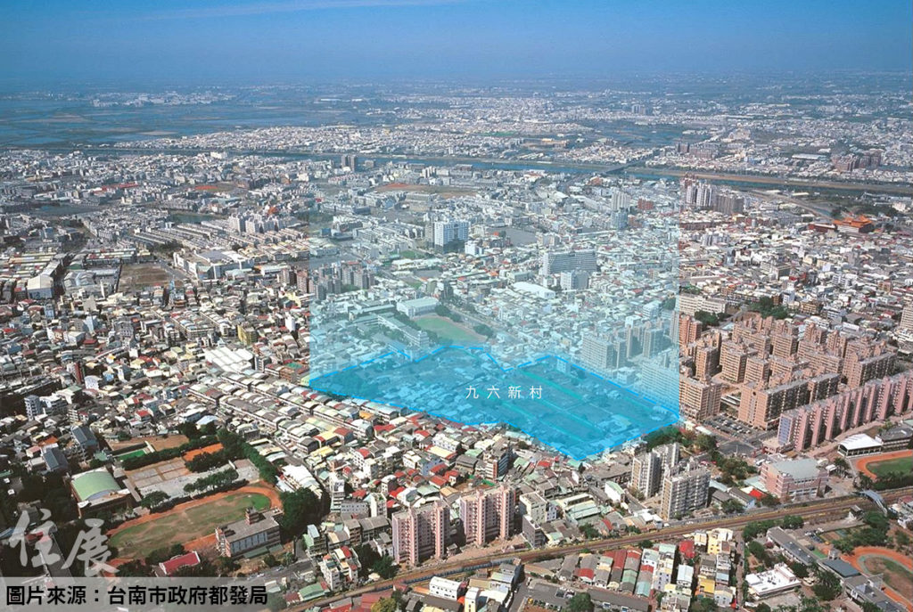 都發局說明,九六新村總面積4.82公頃,招商面積約為1.9公頃,位於北區大道新城眷改社區及和緯路以南住宅聚落交界位置,鄰近延平國中及台南鐵路地下化廊帶等開放空間。未來透過提升公共服務效能,串聯周邊公園綠地之綠軸,型塑低碳休閒優質住宅區,並發展鄰里型生活商業及優質的生活居住空間。