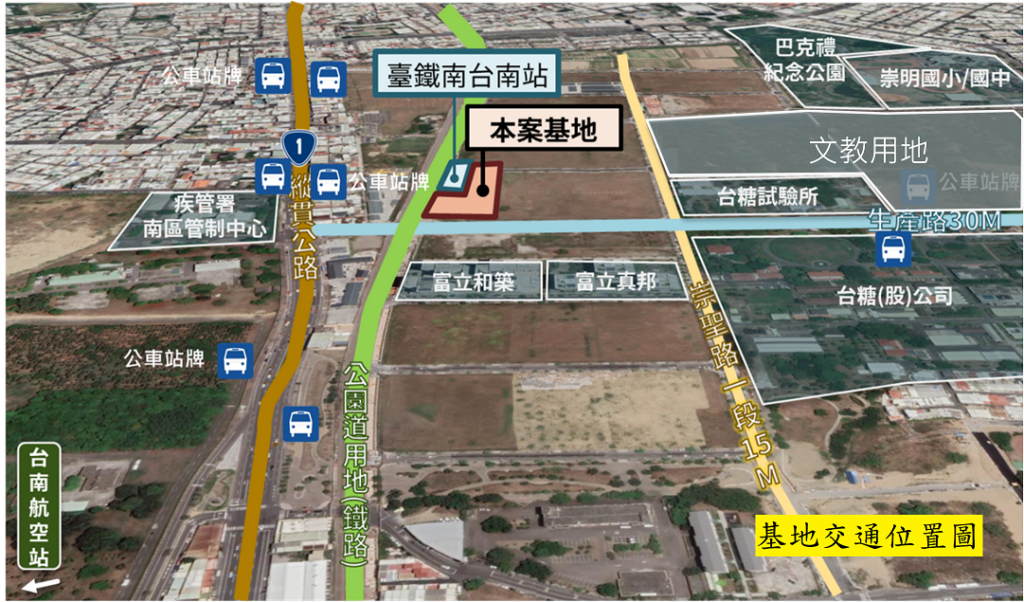 為促進土地有效利用,台南市東區南台南站副都心第一期區段徵收土地推出車站專用區土地設定地上權招商案一筆,該素地除可提供交通轉運之外,也可作為購物商場、百貨零售、辦公室、旅館、餐飲、休閒娛樂所用,將於今(2024)年9月辦理開標作業。