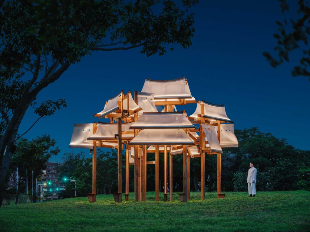 建築聚集而成的城市面貌,猶如海上船隻群集的景緻。基地旁是日治時期造船廠遺址,作品以實木構張錯落船帆,詮釋府城400年歷史建築印象,亦彷彿在水岸邊匯聚眾多船隻,船帆起伏交疊,那是將要出航的時刻,也是航行者歸來景致;那是眾人團結相聚的所在,也是城市記憶的追尋與重現。登上船、揚起帆、迎著風、邁向大海;我們出發,我們回家。