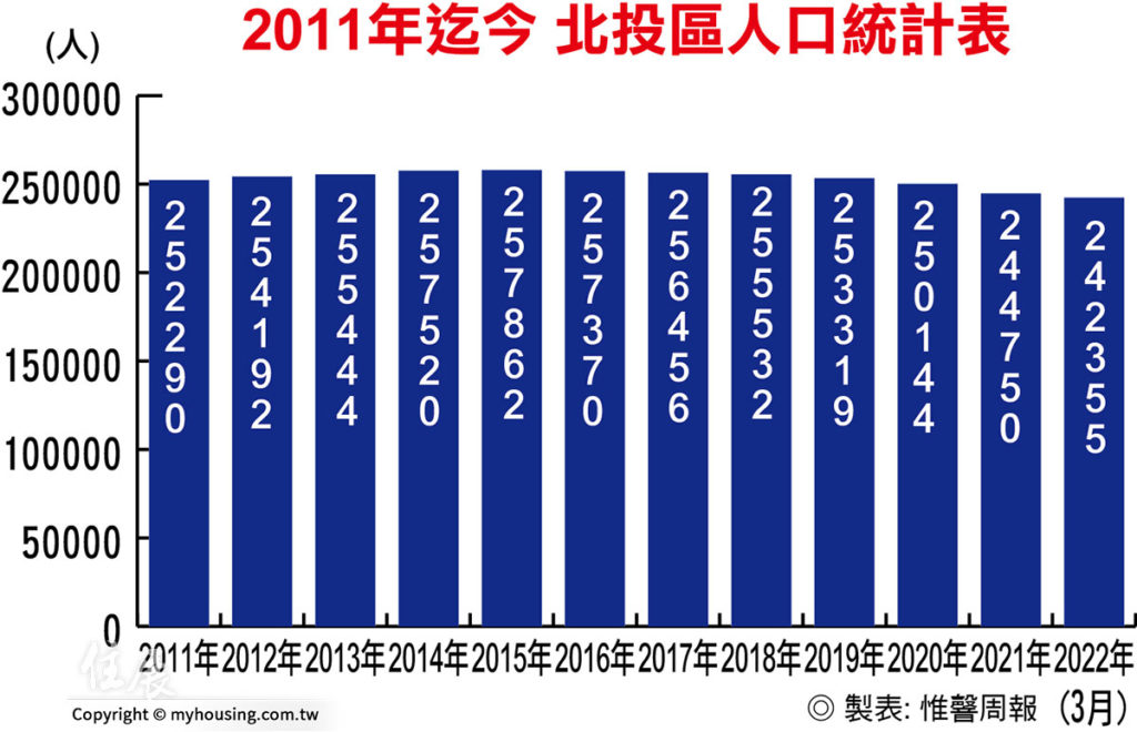 受到陽明山山脈及基隆河『夾擊』的天然地勢障礙影響,北投開發腹地相對於其他行政區來說比較狹窄,加上地理位置位在台北市最北端,來自市中心客源要進駐並不容易,所以不僅歷年供給不多,房價亦屬邊陲行情。隨著捷運淡水線在1999年通車,適時提供本區聯絡市中心,乃至引進外地客源的功能。