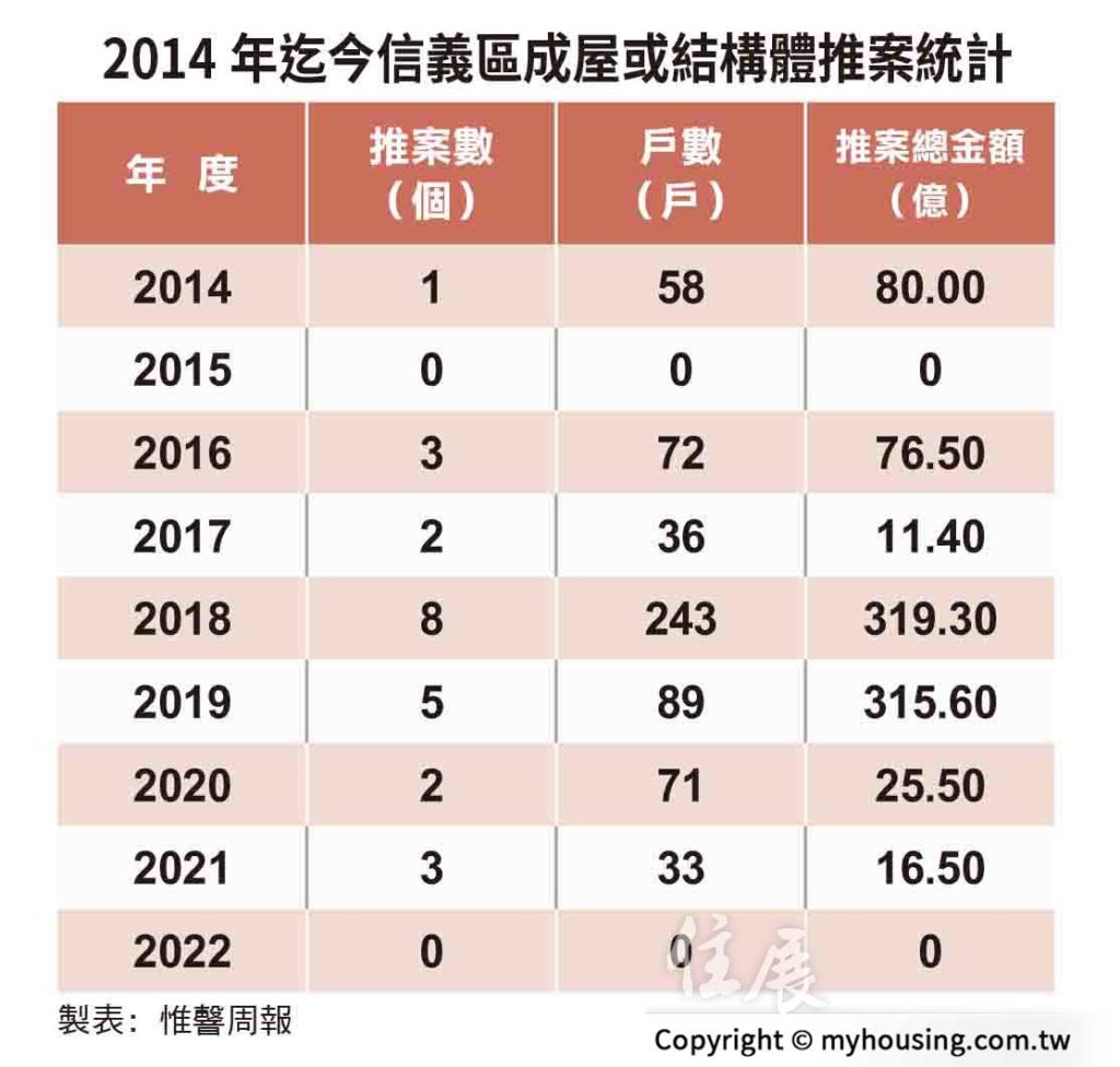 然而2021年推案量銳減至185戶,2022年在烏俄戰爭、通膨升息、共軍繞台軍演等國內外多項利空衝擊下,房市漸降溫,信義區全年推案量更僅剩下114戶,高價豪宅買氣也明顯緊縮,尤其《平均地權條例》修法通過,未來私法人購買住宅採許可制,業界預估,豪宅交易量必然受到影響。