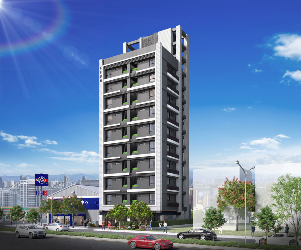 接著縣二、高鐵特區交界處,還有天貴美建設/鴻奕建設「幸福棧」,屬危老案,規劃13戶(含1戶店面),為27~36坪2房、樓中樓產品,訴求全棟採4000磅混凝土、戶戶邊間,標配YKK AP氣密窗、KRONOTEX木地板、GROHE五金…等。