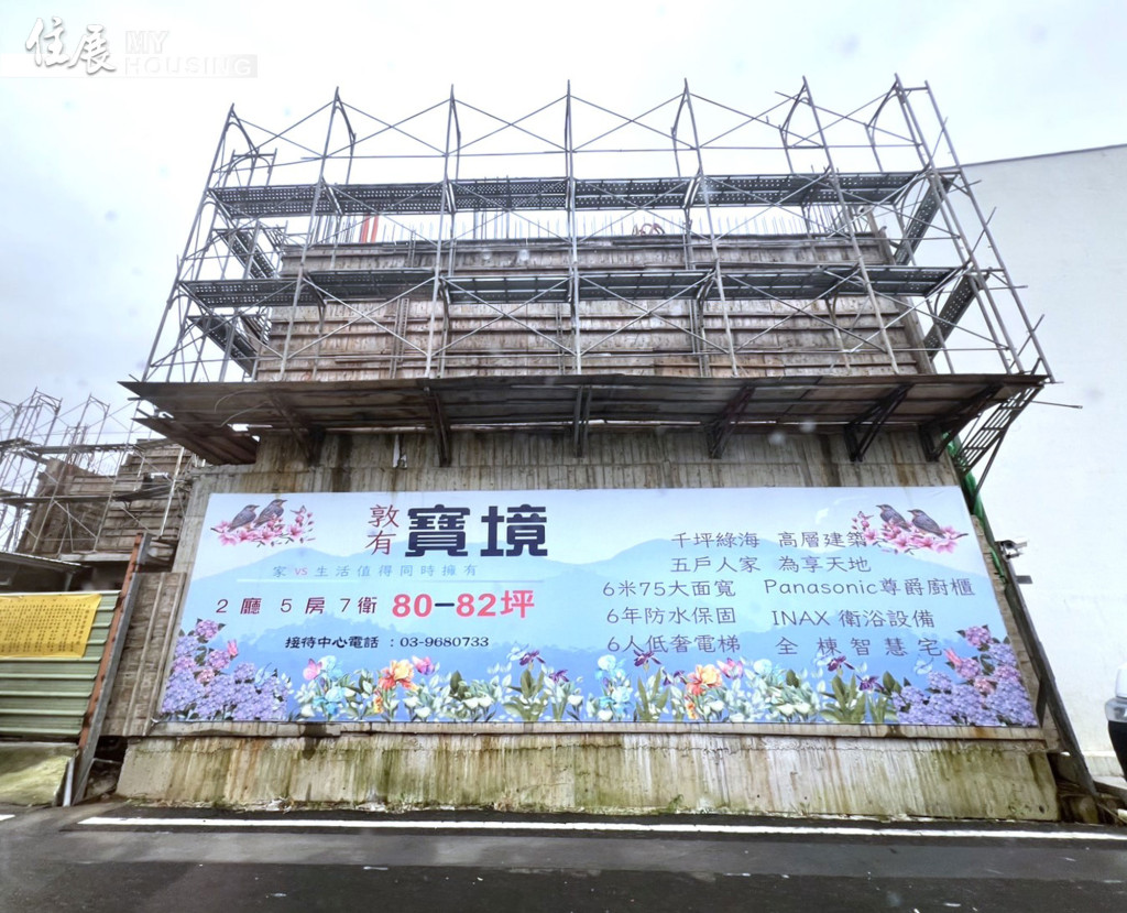 接著,永鎮路上敦有建設的「敦有寶境」基地車行至順安或清溝地區皆便利,規劃5戶電梯透天,建坪82坪、地坪38坪、面寬6.7米,開價2180萬元起/戶。