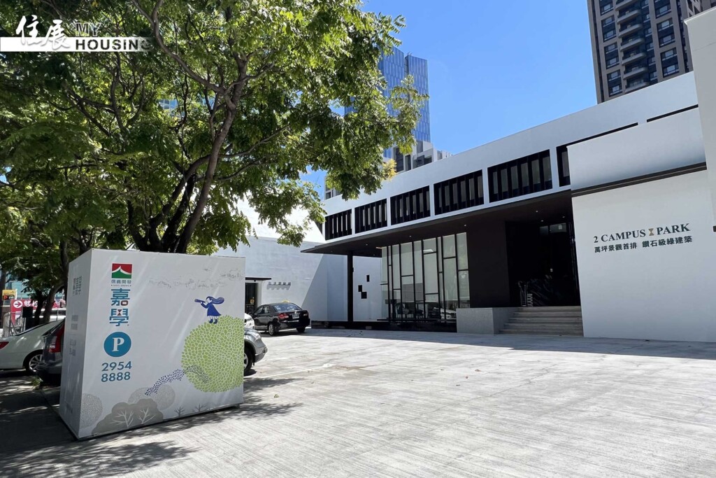 先看較早進場的信義開發「嘉學.」,基地面昌平國小,近塭仔底濕地公園,規劃100戶(含4戶店面),為28~43坪2~3房格局,強調鑽石級綠建築候選,並訴求信義開發十大服務保證(房屋健檢、防水保固等),雖開價相對不親民(約70~81萬/坪),不過客戶接受度仍算高。