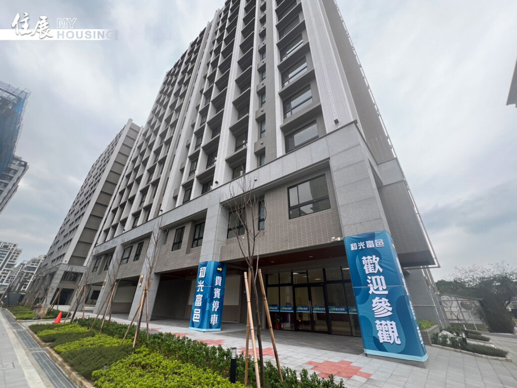 先看到上述提到的成屋新案,和光建設的「和光富邑」位新市二路三段36巷38號,至輕軌淡海新市鎮站約450公尺,規劃197戶(含店面),為25~47坪的2~3房格局,屬於市場相對大坪數格局,訴求格局方正,坪數宜居,目前於建案內一樓銷售。