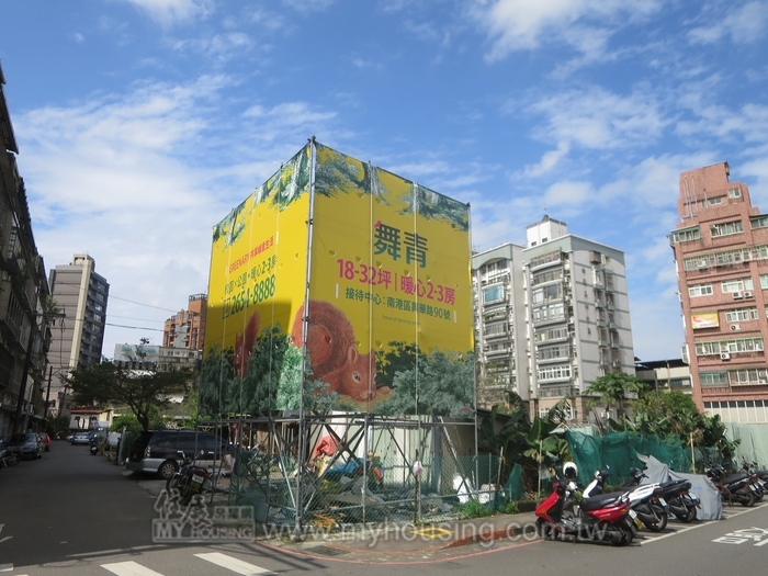 新案先看到勝輝機構─興南街巷內的「舞青」,基地鄰近東新國小,距南港車站、軟體園區不遠,規劃47戶住家,為18~32坪、2~3房格局,強調為呂建勳建築設計。該案人員雖已進駐接待中心,但部分銷售道具尚未到位,正式公開時間估計會在本月底。
