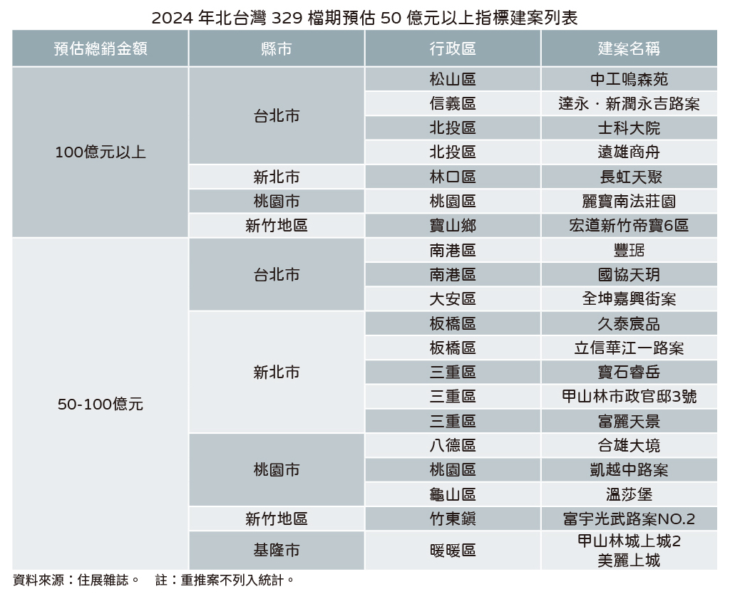 北台灣329檔期逾3千億 台北市百億新案4大天王帶頭衝