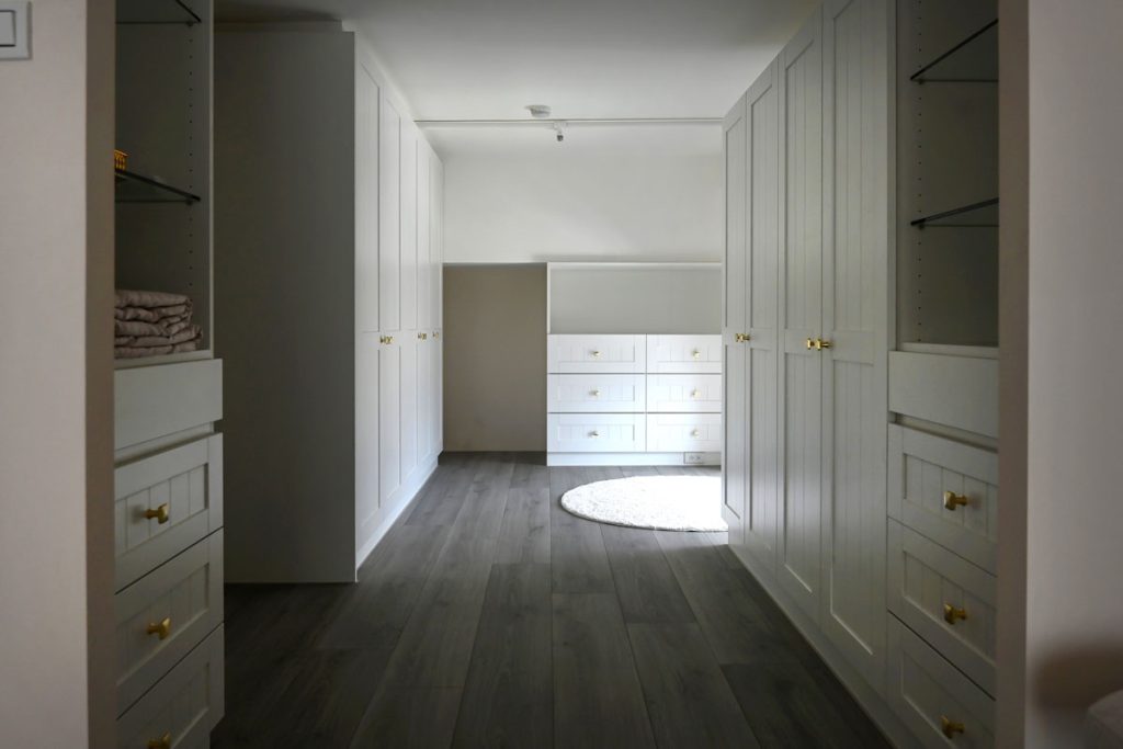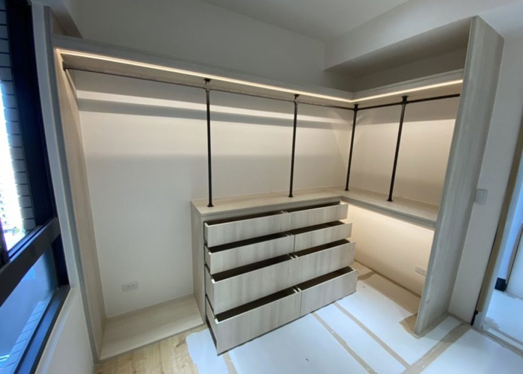 木作能呈現弧形、線板、異材質拼接,並可整合燈光與五金,營造精品般的細節。林聖哲舉例,高端住宅常見衣櫃內嵌照明、首飾抽屜或特殊造型天花板,皆由木作達成。