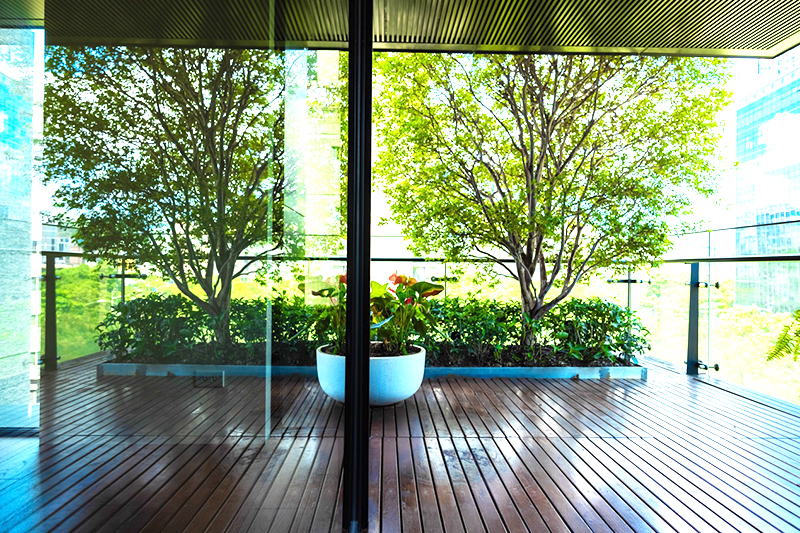 為了規劃豪宅的專屬景觀,戶戶打造跳島式的露台設計,並植入一米深樹穴與滴灌系統的蒔花,讓戶戶私家樹院自然生長出去,與屋外的綠蔭大道相呼應,坐在客廳裡向家院望去,彷彿讓人有種住在自然樹海裡的錯覺,我家就住森林綠蔭裡。